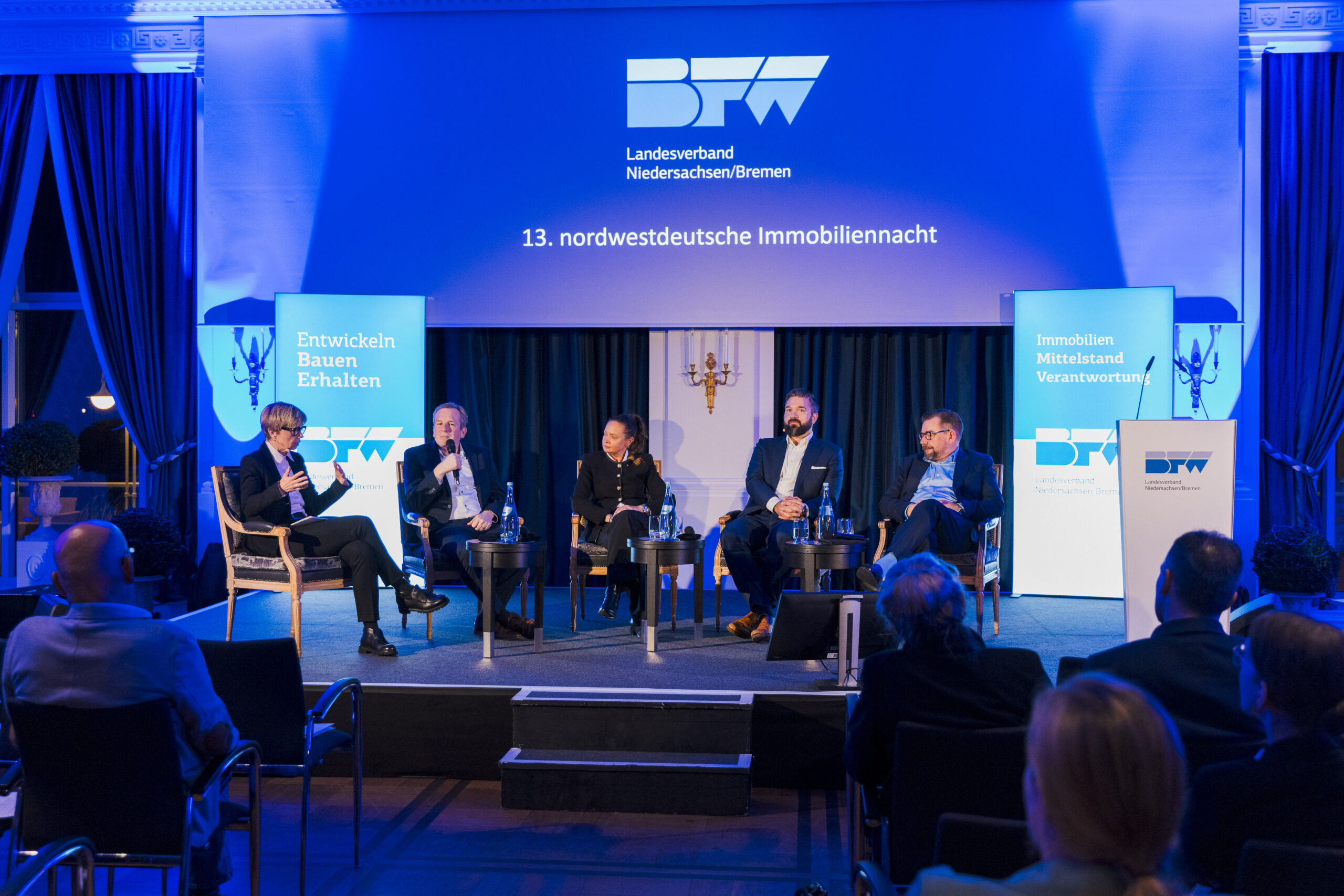 Bremen, 20.11.2025. Die Bau- und Immobilienbranche kämpft weiterhin mit enormen Herausforderungen: gestiegene Kosten, stagnierende Genehmigungszahlen, verunsicherte Investoren und einem politischen Umfeld, das eher Ankündigungen als Entlastungen liefert. Gleichzeitig bleibt der Bedarf an bezahlbarem Wohnraum ungebrochen hoch. Wie Deutschland dennoch die Trendwende schaffen kann, stand im Mittelpunkt der 13. nordwestdeutschen Immobiliennacht des BFW Niedersachsen/Bremen.